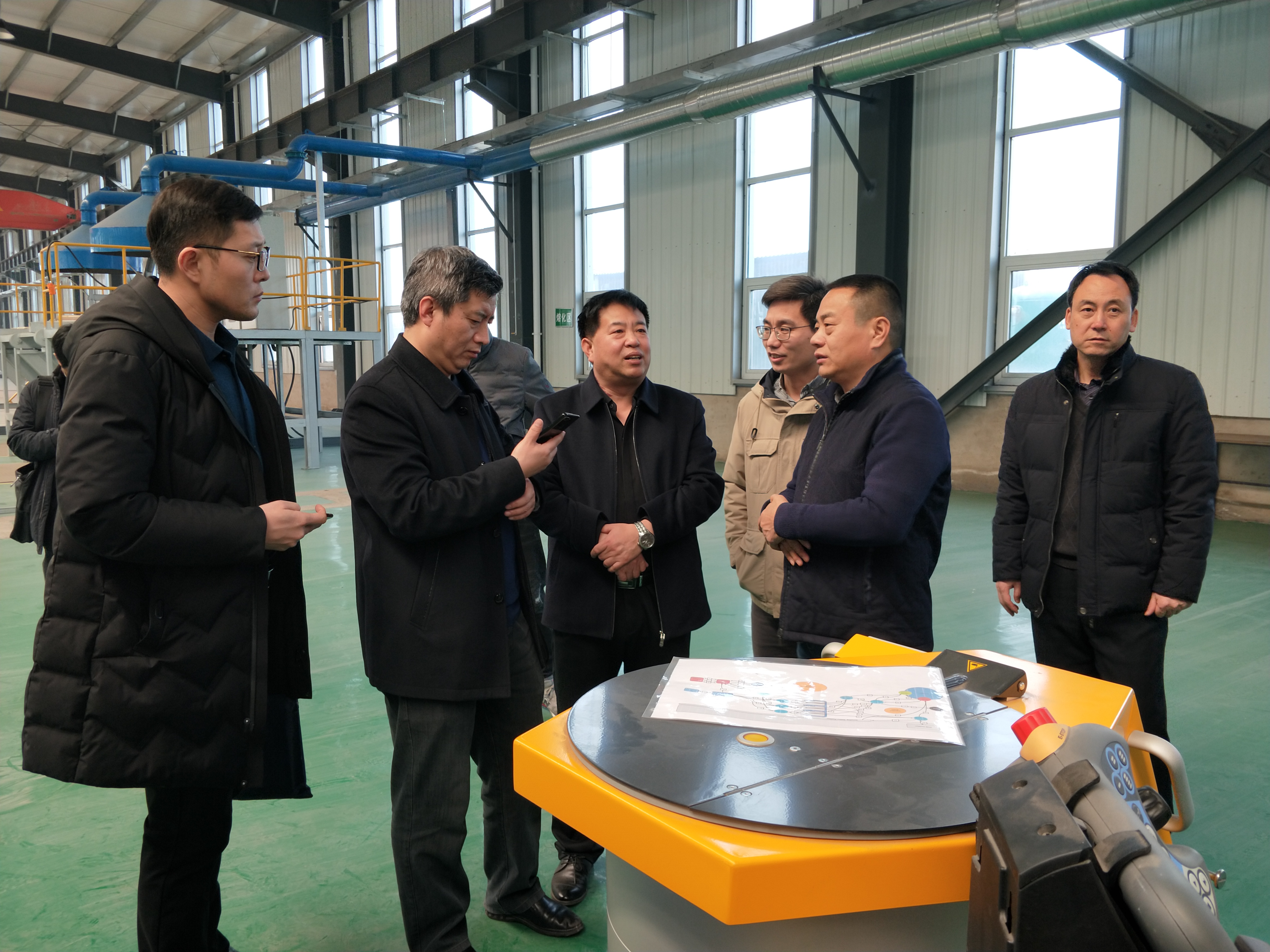 靳新遠副局長一行在生產現場調研,參加座談會。